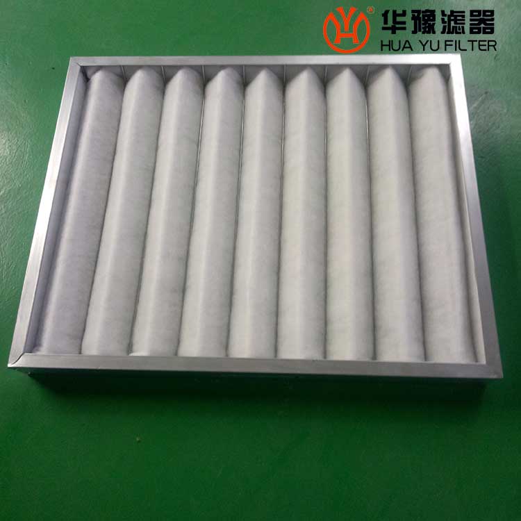 過濾材料是以折疊形式裝入高強度模且硬紙板內(nèi),迎風面積增大,流入空氣中的塵埃粒子被過濾材料有效阻擋在褶與褶之間,潔凈空氣從另一面均勻流出,因此氣流通過過濾器是平緩和均勻的。
