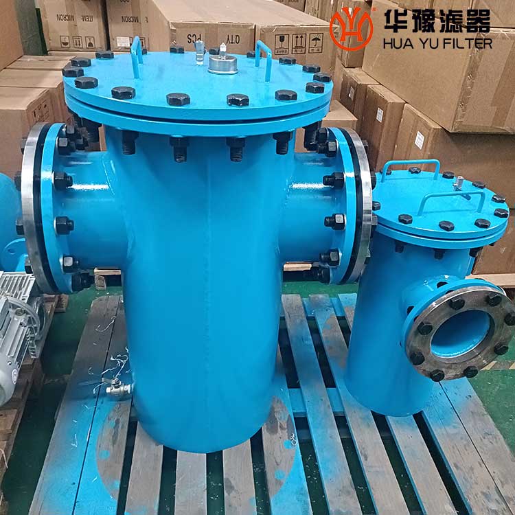 籃式過濾器主要由接管、主管、濾藍、法蘭、法蘭蓋及緊固件等組成。當液體通過主管進入濾藍后,固體雜質顆粒被阻擋在濾藍內,而潔凈的流體通過濾籃、由過濾器出口排出。當需要清洗時,旋開主管底部螺塞,排凈流體,拆卸法蘭蓋,清洗后重新裝入即可,因此,使用維護極為方便。
